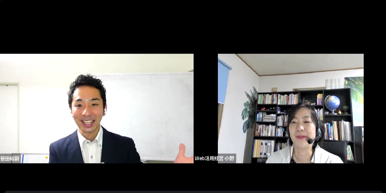Web活用経営株式会社(代表取締役:小野晴世)と株式会社営業ハック(代表取締役:笹田裕嗣)は7月15日(金)に共催でオンラインセミナーを開催いたしました。BtoB&中小企業向けにWebコンサルティングを行うWeb活用経営株式会社の代表小野氏には、デジタルマーケティングを始める前に考えるべきことを、株式会社営業ハック代表笹田からは、マーケティングの仕組みがない会社が今すぐ集客する方法をお話させていただきました。16名の経営者・営業責任者・マーケティング責任者・DX推進担当者の方々にご参加いただきましたので、当日の様子をここにご報告いたします。