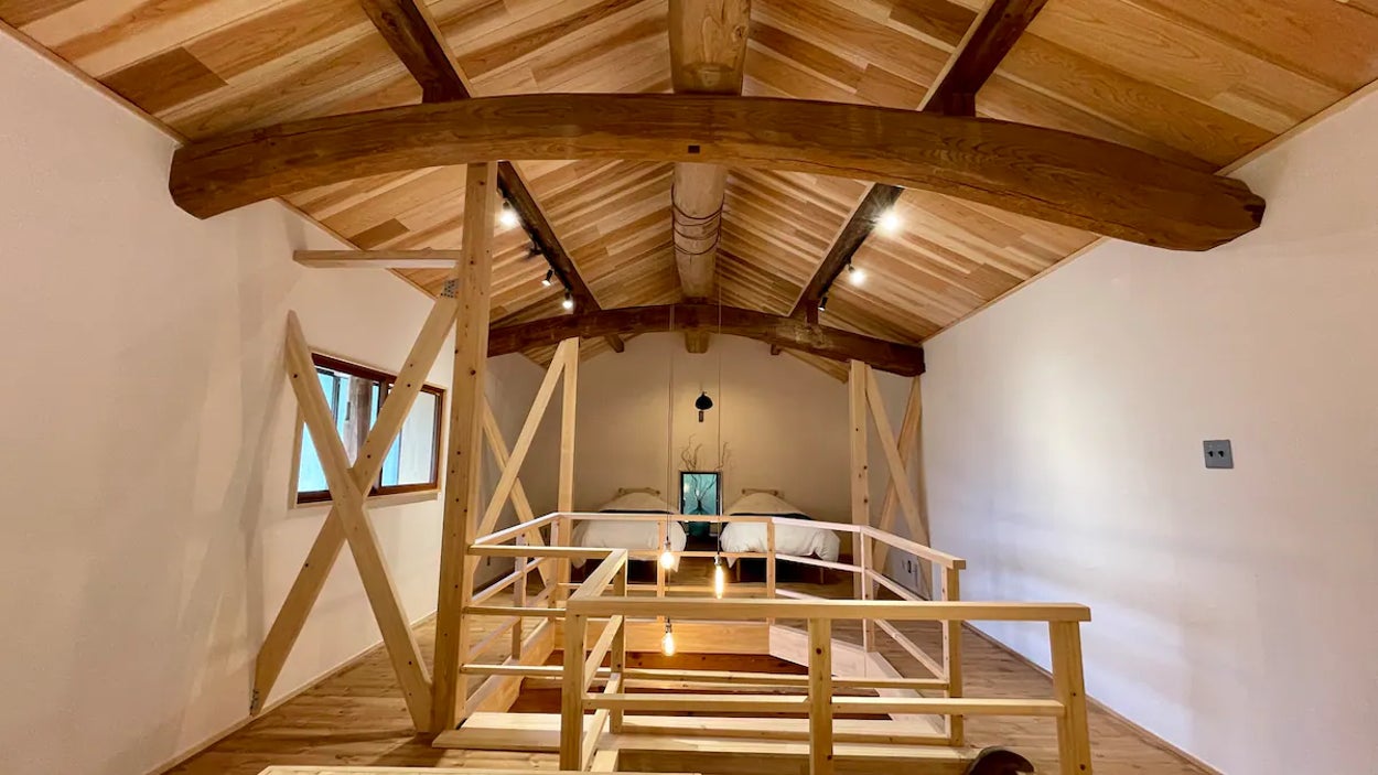 築130年の土蔵をフルリノベーションしたリスティング。梁や柱や玄関扉など、元々の素材を活かしながら、無垢の檜や杉・漆喰などの天然素材を使用した宿泊施設となっています。