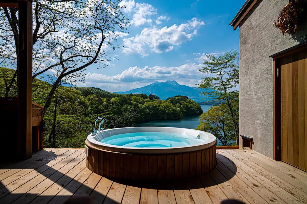 半露天風呂付きの完全プライベートな高級別荘で最高のバケーション体験を。人気ブランド「スノーピーク」と提携した「スノーピークBBQ焚火」や絶景マウンテンビューを楽しむことができます。