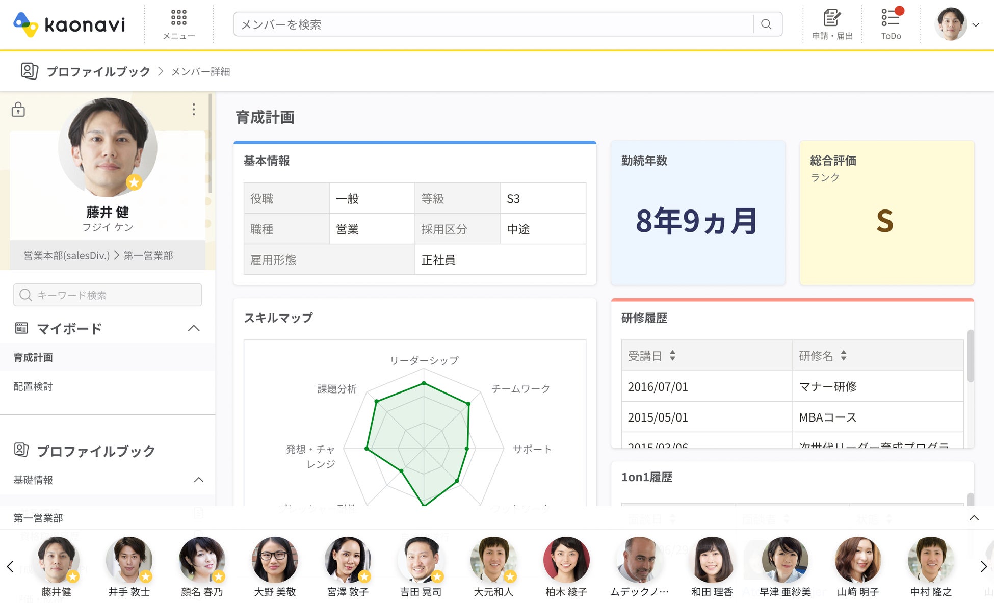 株式会社カオナビは、社員の個性・才能を発掘し、戦略人事を加速させるタレントマネジメントシステム「カオナビ」を提供しています。企業の人材情報をクラウド上で一元管理し、社員の顔や名前、経験、評価、スキル、才能などの人材情報を可視化することで、最適な人材配置や抜擢といった戦略的なタレントマネジメントの実現を支援しております。現在では3,000社※1を超える企業・団体にご利用いただき、8年連続国内No.1シェア※2を獲得しています。