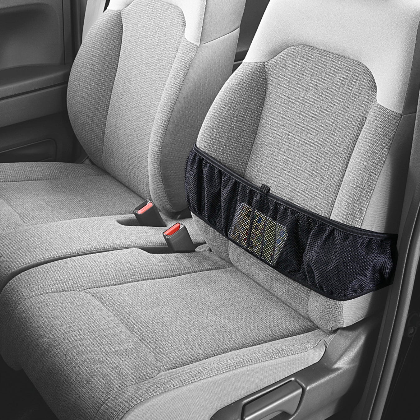 ■あらゆる車で使用可能。取り付け簡単で、後部座席用の小物入れとしても使える
