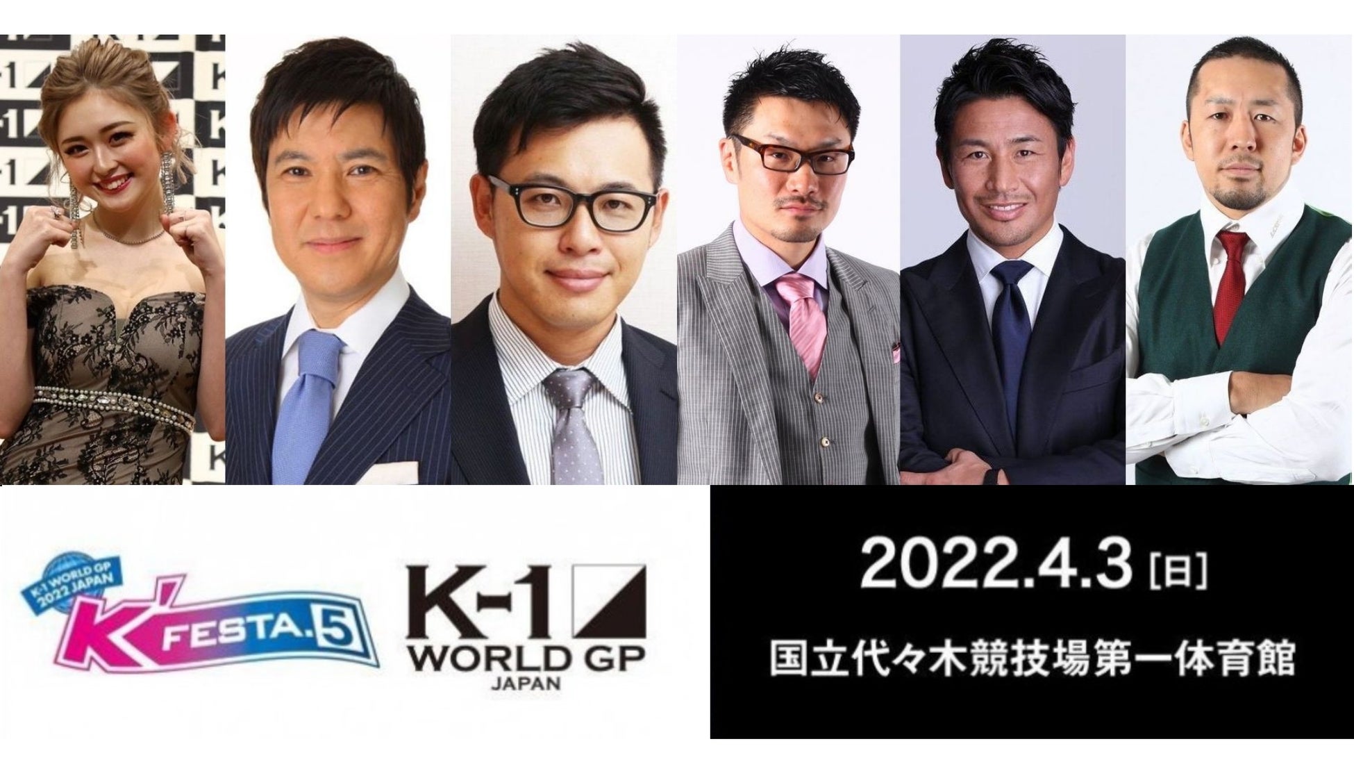 4.3(日)K-1大会「K'FESTA.5」豪華解説陣に 関根勤さん・ゆうちゃみさん・アルコ&ピース平子祐希さん・魔裟斗さん・佐藤嘉洋さん・上原誠さんが登場!