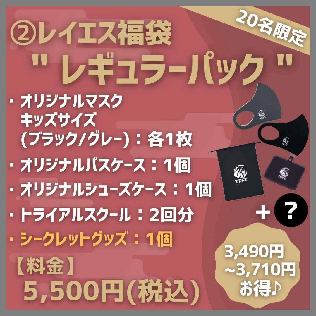 東急SレイエスFCから日頃の感謝の気持ちを込めて、赤字覚悟のレイエス福袋の登場です!絶対にお得なレイエス福袋は数量限定ですので、ぜひお早めにご購入ください。