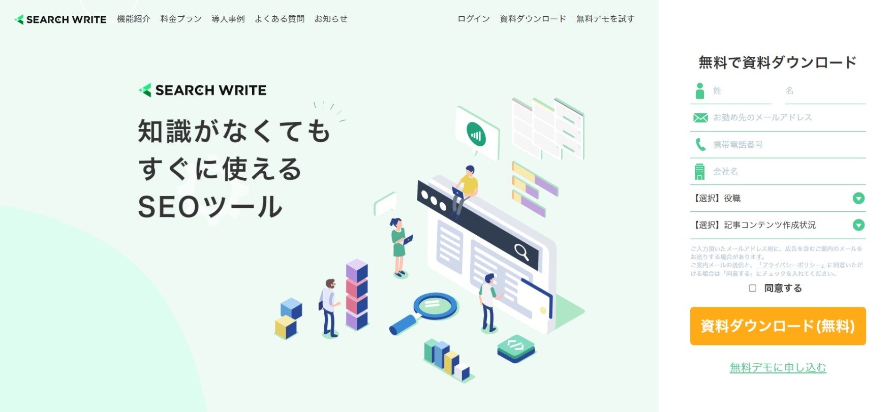 「SEARCH WRITE」は "知識がなくてもすぐに使えるSEOツール" をコンセプトに、数字を見て改善点がわかるだけでなく、誰でも手軽にツールを使いこなし、成果を出すことができるよう運用をサポートするSEOツールです。