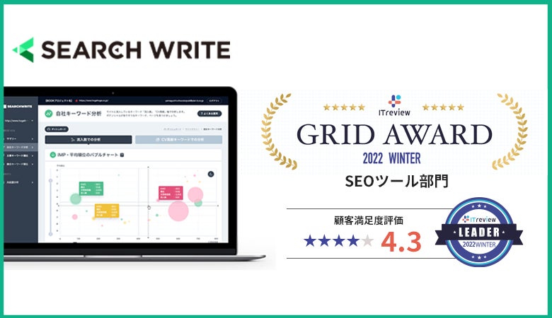 【2期連続受賞】SEOツール「SEARCH WRITE(サーチライト)」がITreview Grid Award 2022 Winterにて「Leader」を受賞!