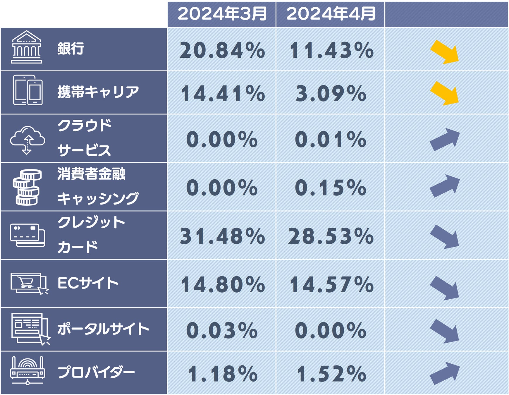 ※5ポイント以上減少したカテゴリは黄色の矢印になります。