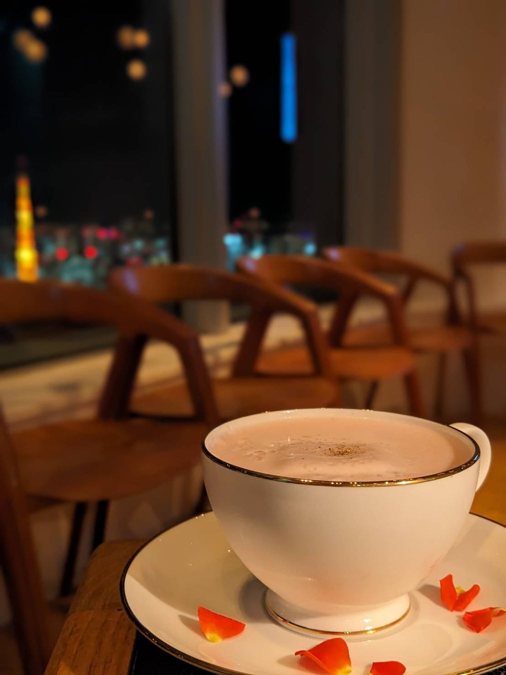 「THE SUN & THE MOON」のレストランでは、バレンタインデートにもぴったりな“初恋”をテーマにしたカクテルNostalgic Berry(2,600円/サービス料10%別)を2月1日(木)から期間限定で提供。海抜250メートルから臨む東京の夜景と共に、イチゴとアーモンドが描く複層的でノスタルジックな世界をお楽しみください。