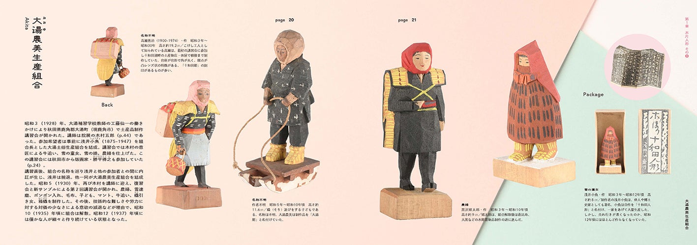 ・1章/木片人形その1(日本農美生産組合、信州の生産組合、大湯農美生産組合、木彫秋田風俗人形、大島農美生産組合…)