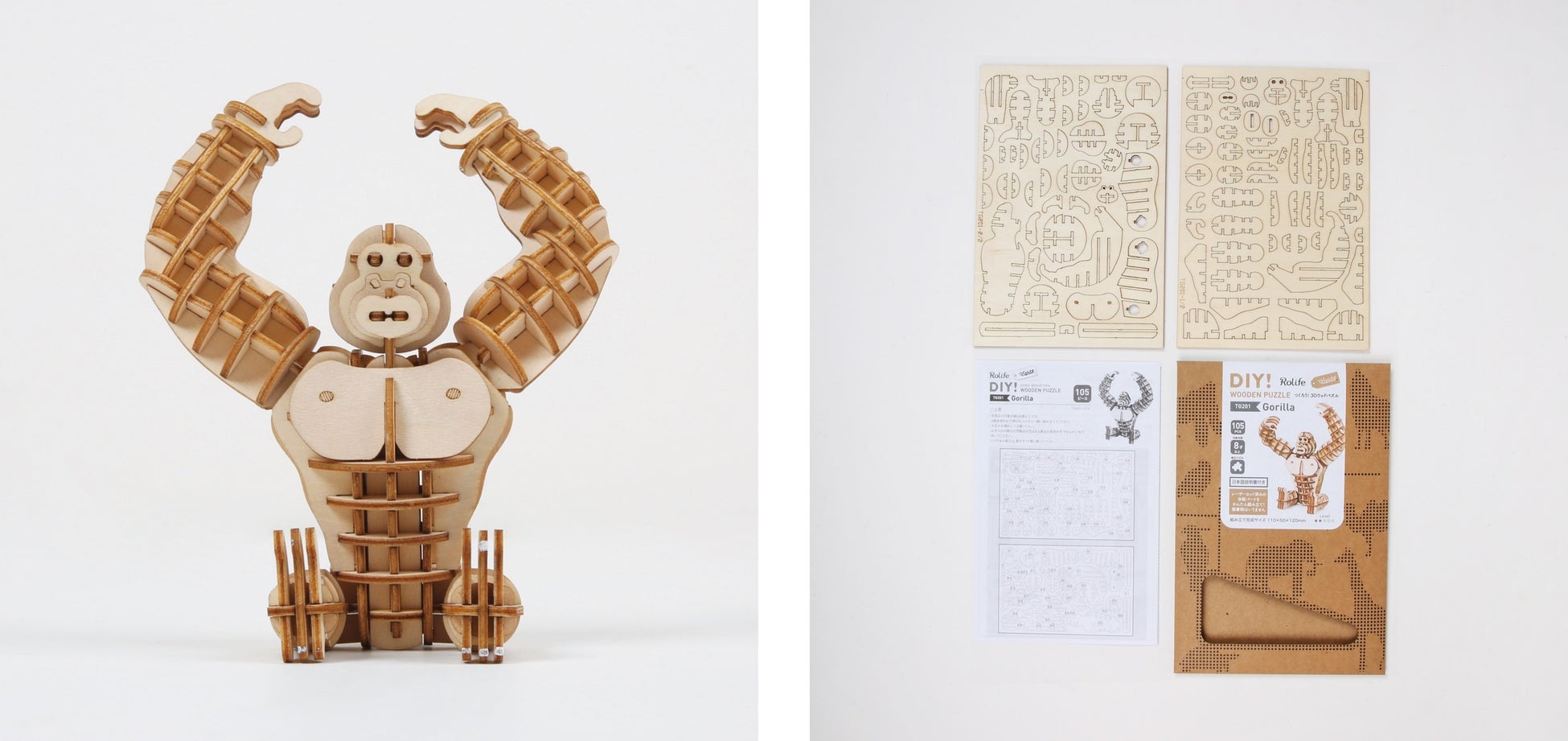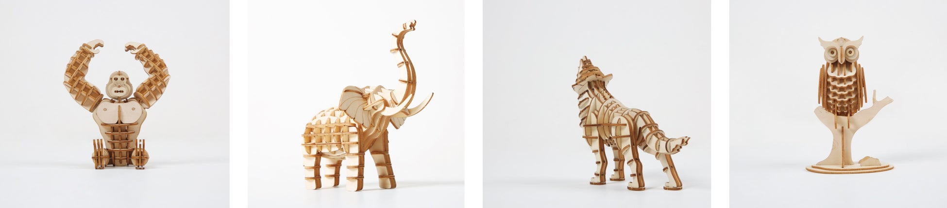 どうぶつシリーズは、一番パーツ数が少ないもので33ピース、多いものでも105ピースと、つくるんですシリーズの中ではパーツ数が少なめです。1時間半ほどでつくることができ、お子さまでも挑戦しやすいウッドパズルです。