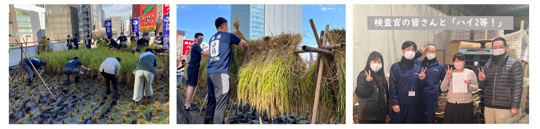 東京・銀座屋上の農園「白鶴銀座天空農園」で自社開発酒米「白鶴錦」の稲刈りが無事終了! ~穀物検査で最高ランクの2等を獲得~