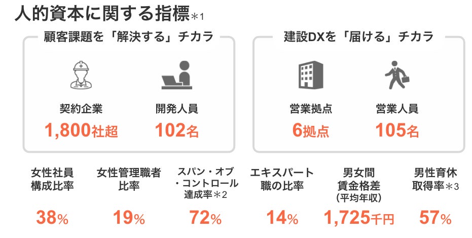 建設業を主な対象にVertical SaaS事業を展開する当社の持つ資源のほとんどは、無形資産であり、顧客の働く喜びの創造には社員一人ひとりの成長が欠かせません。