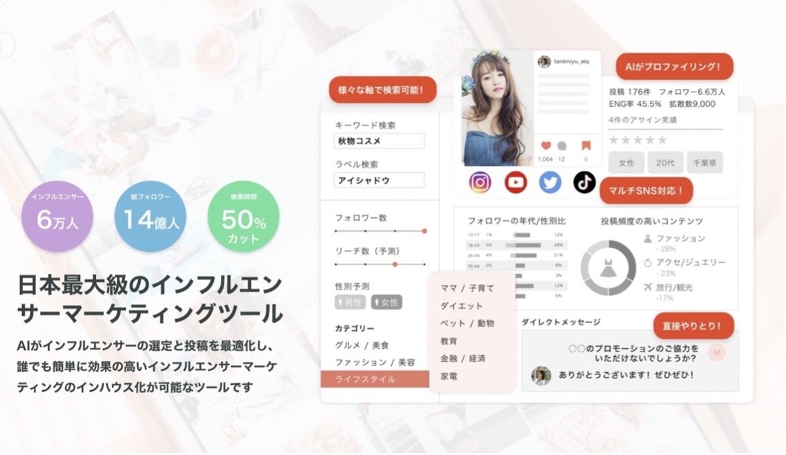 わずか4ヶ月で有料利用企業が100社を突破し、従来のインフルエンサーPRでは難しいとされていた効果検証を高いレベルで行うことができます。