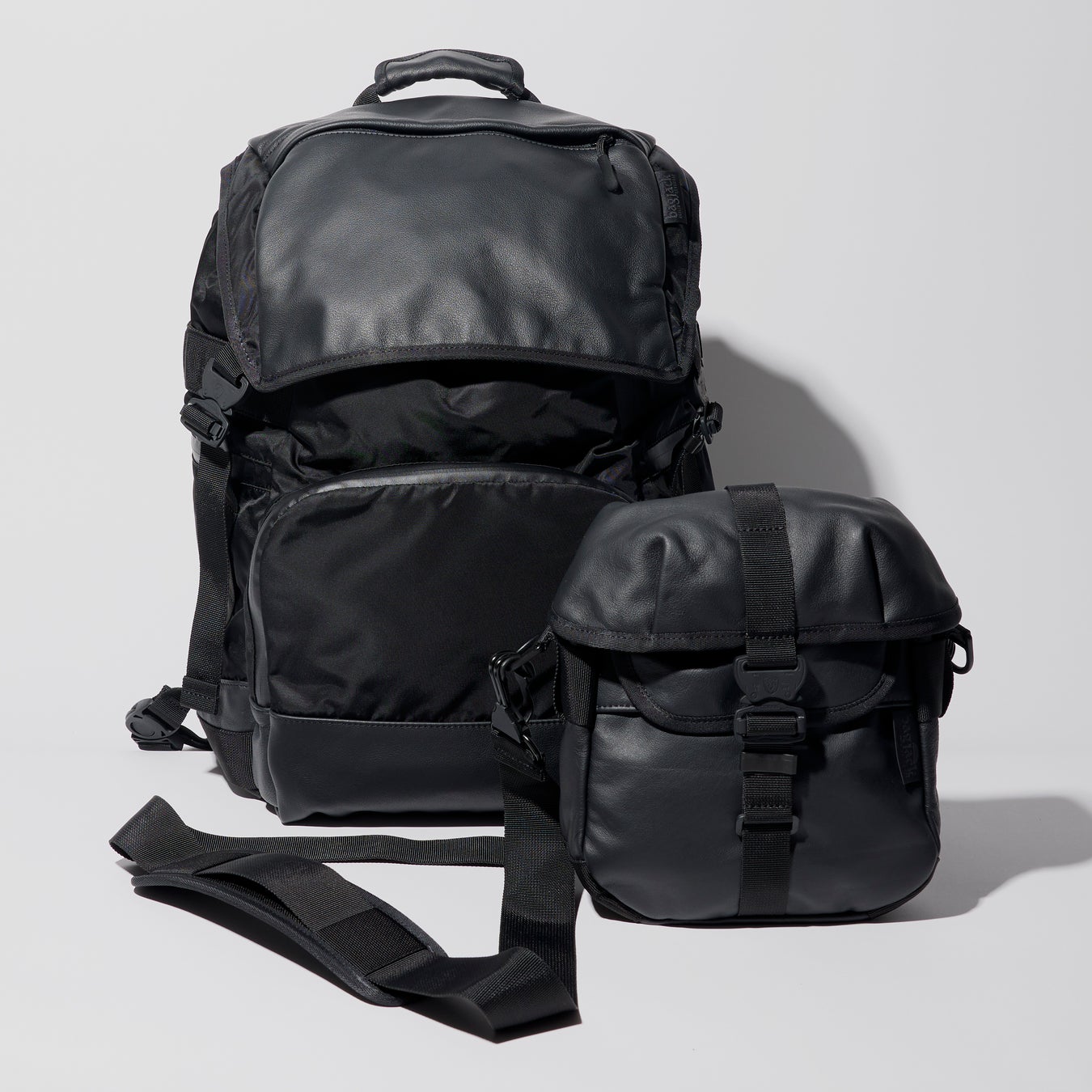 ドイツでの少数生産によりプロユースの機能性に優れたバッグを手掛ける<バックジャック>。バーニーズ ニューヨーク創業100周年を記念してご用意したアイテムは、レザーとリモンタナイロンのコンビネーション素材を用いたバックパックとミニショルダーの2アイテム。ともにストラップ部分には、特殊な方法でマットブラックに塗装したコブラバックルを組合わせた特別仕様。高級感がありながら軽量で、ポケットなどの使いやすさにもこだわりを感じられる逸品です。バーニーズ ニューヨークのコーポレートカラーであるオールブラックに仕上げた、ラグジュアリーなアクティブバッグをお楽しみください。