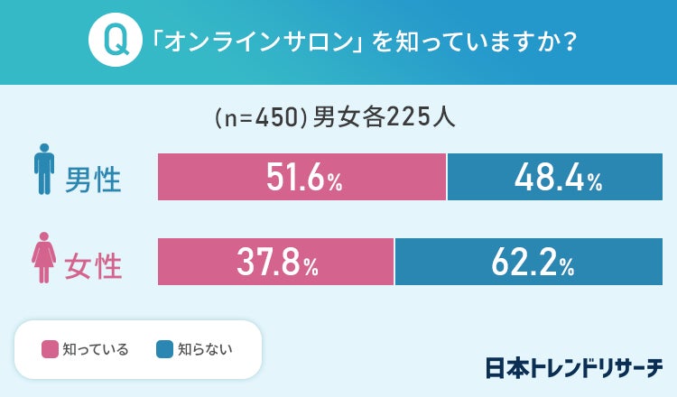 オンラインサロンを知っているかどうか聞いたところ、「知っている」と回答した方は51.6%でした。