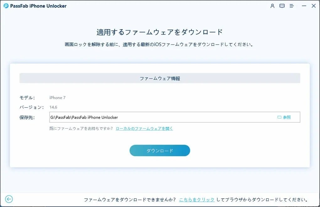 Step3:iOSファームウェアが自動的に検出されますので保存先を指定して、「ダウンロード」をクリックします。