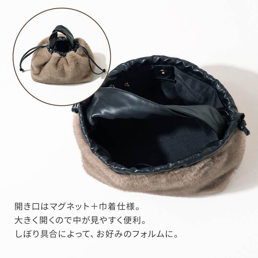 誰もが振り向きたくなる、上品な大人ムード漂うエコファーバッグ。