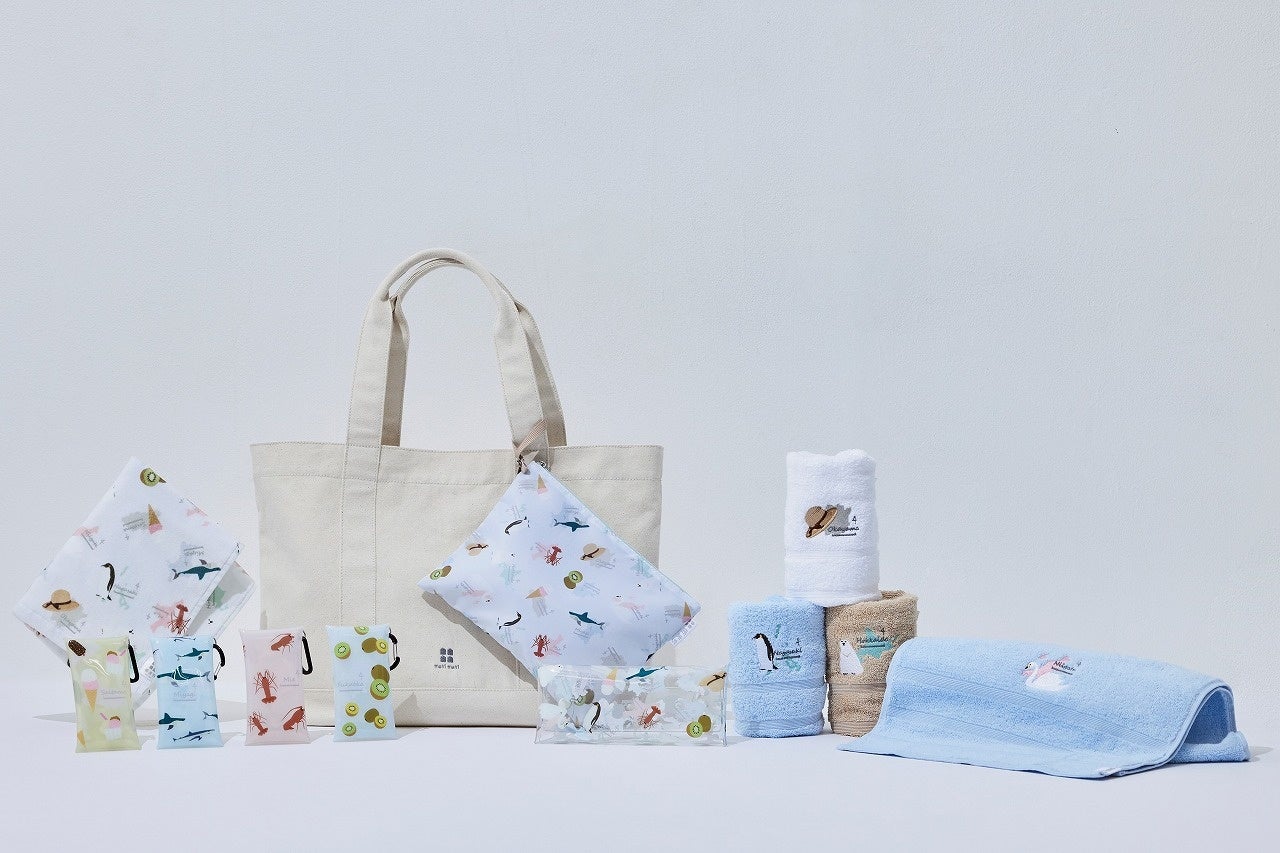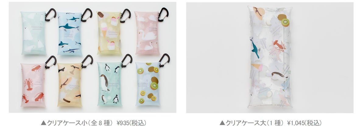 「北海道」「宮城県」「埼玉県」「新潟県」「三重県」「岡山県」「福岡県」「長崎県」の全8エリアを、「クリアケース小」「クリアケース大」「ウォッシュタオル」「フェイスタオル」「トートバッグ」の5つのアイテムで展開します。