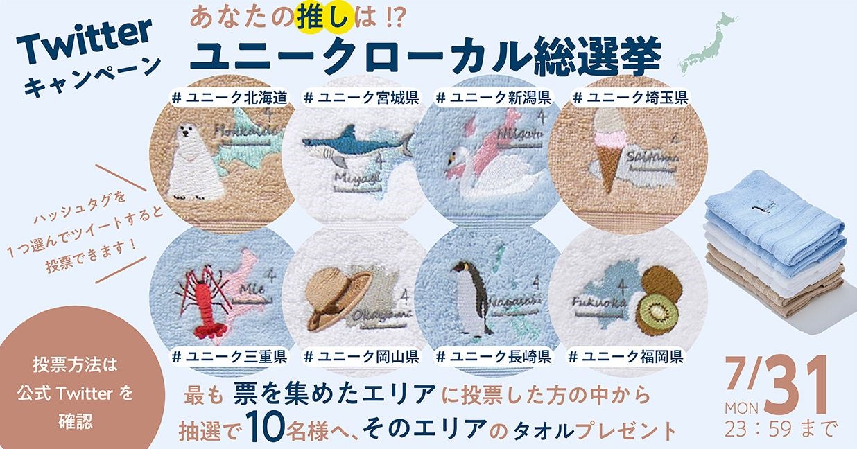 ■公式Twitterで「ユニークローカル総選挙」を開催!抽選で10名様にフェイスタオルをプレゼント!