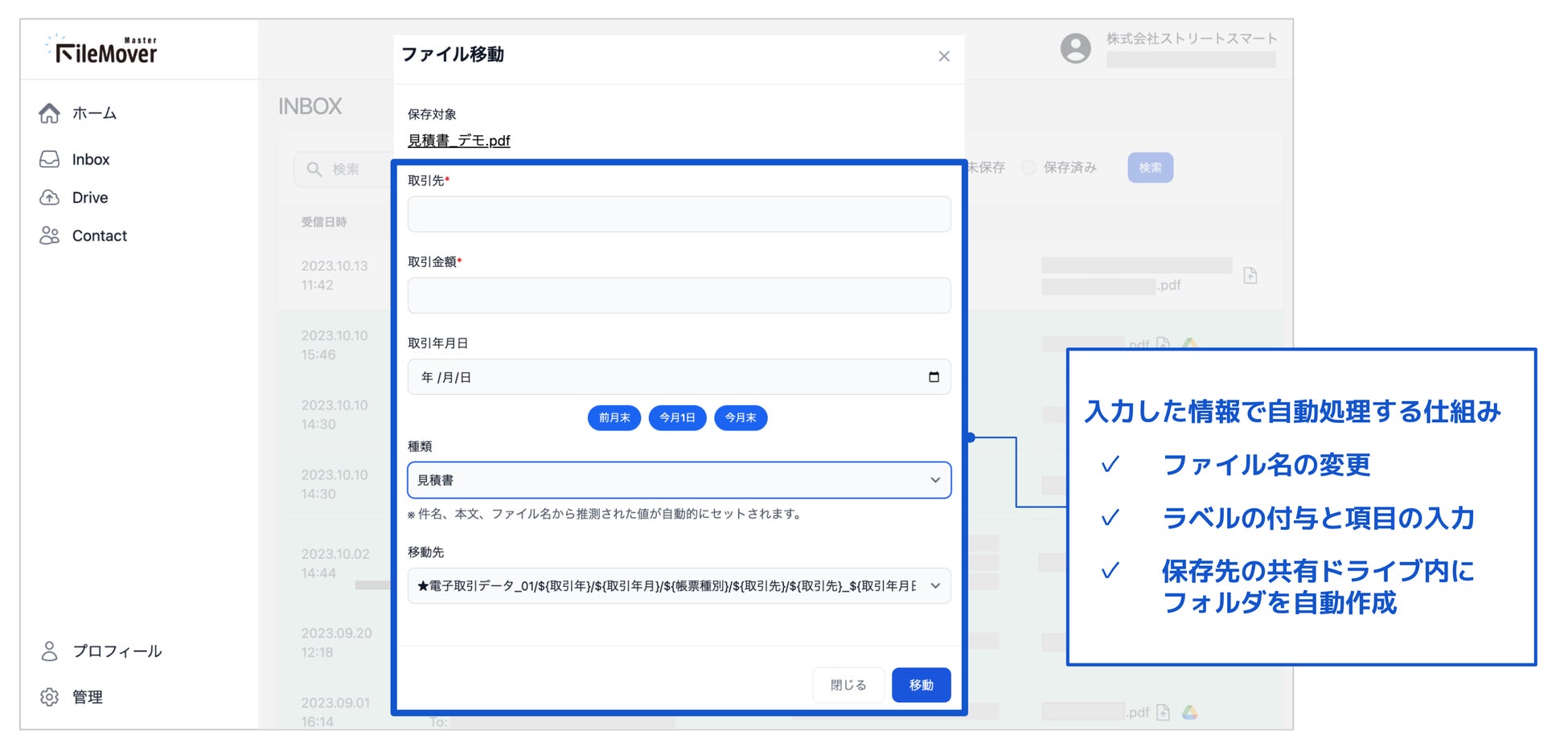 企業や教育機関のDXを支援する株式会社ストリートスマート(所在地:大阪府大阪市北区、代表取締役社長:森田竜次、以下:ストリートスマート)は、Google Workspace による企業の電子帳簿保存法(以下、電帳法)対応の業務を支援するアドオンサービス「Master FileMover」の正式提供を開始します。