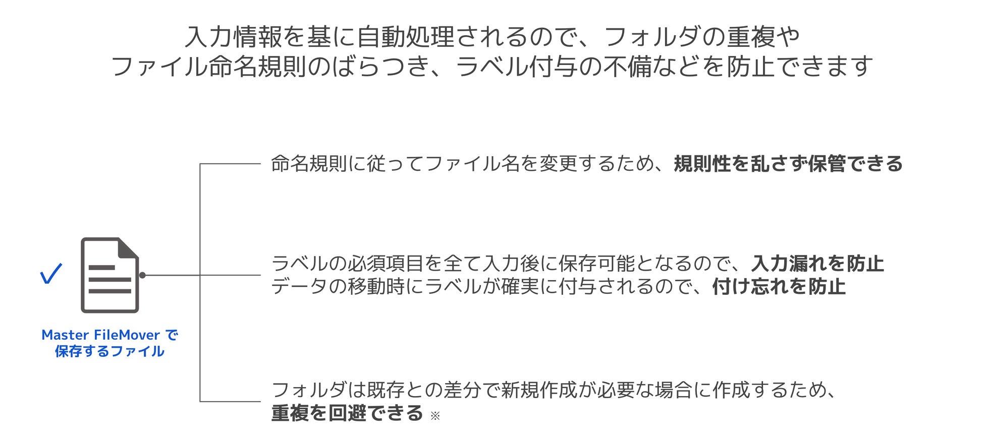 管理者やユーザーが意識しなくとも、操作ミスや運用ルールの逸脱を防止し、整備されたデータ保存環境を維持できる