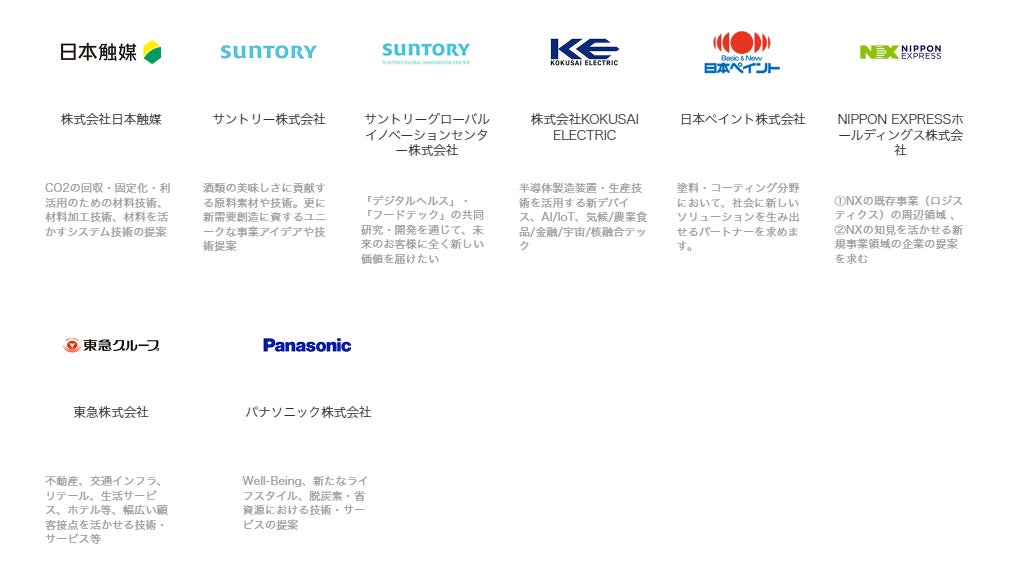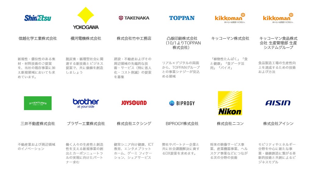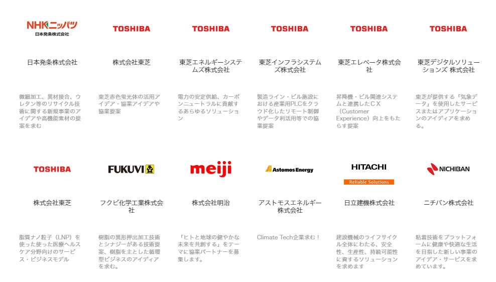 ILS2023パワーマッチング 参画大手企業とスタートアップとの協業テーマ |
