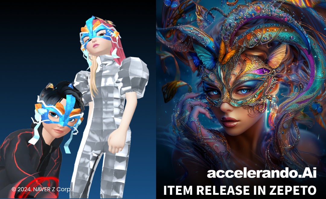 蝶が舞う華やかなマスクでバーチャル仮面舞踏会の注目の的に。ZEPETOアバターに向けた新アイテムが未来のファッションブランド「accelerando.Ai」より登場!