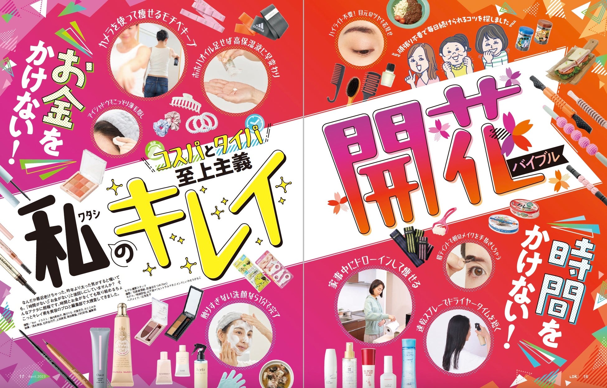 4月号では、「神ドライヤーランキング 2023」を大特集。お手頃価格で速乾&美髪を叶える絶対買いのドライヤーを探しました! そのほかにも、総力特集「私のキレイ開花バイブル」では、家事や仕事が忙しくても続けられる“コスパ”と“タイパ”のいいスキンケアやヘアケアアイテムをご紹介。さらに、お片付けのチリ積も悩みを大解決する「楽天収納アイテム丸バツジャッジ」など、暮らしに役立つ情報満載でお届けしています。本リリースでは、編集部が“本当におすすめできる”製品の⼀部をご紹介します。
