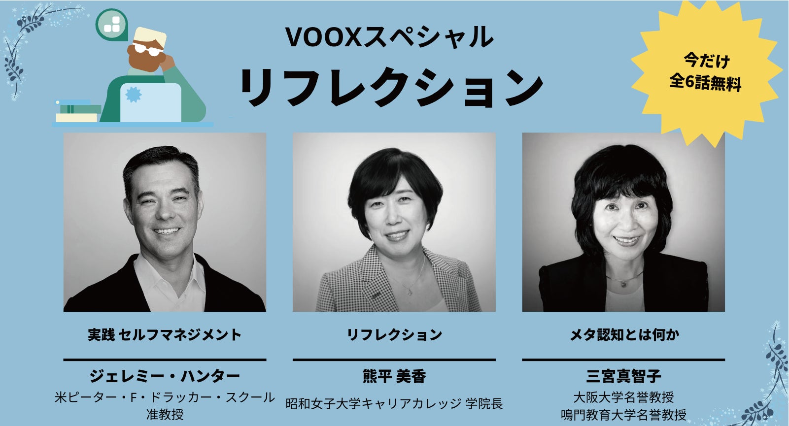 VOOXの人気3作品を2022年12月30日(金)〜2023年1月13日(金) 無料公開。年の瀬に、自分自身を効果的に振り返り、来年に繋げたいみなさん必聴のシリーズです。