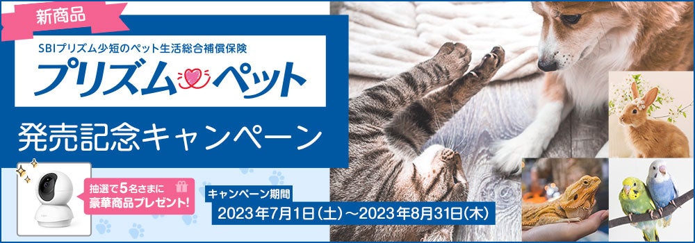 SBIプリズム少額短期保険株式会社(本社:宮城県仙台市、代表取締役社長:遠藤 匡、以下「当社」)は、2023年7月1日(土)から2023年8月31日(木)までの期間で「新商品『プリズムペット』発売記念キャンペーン」を実施することをお知らせいたします。