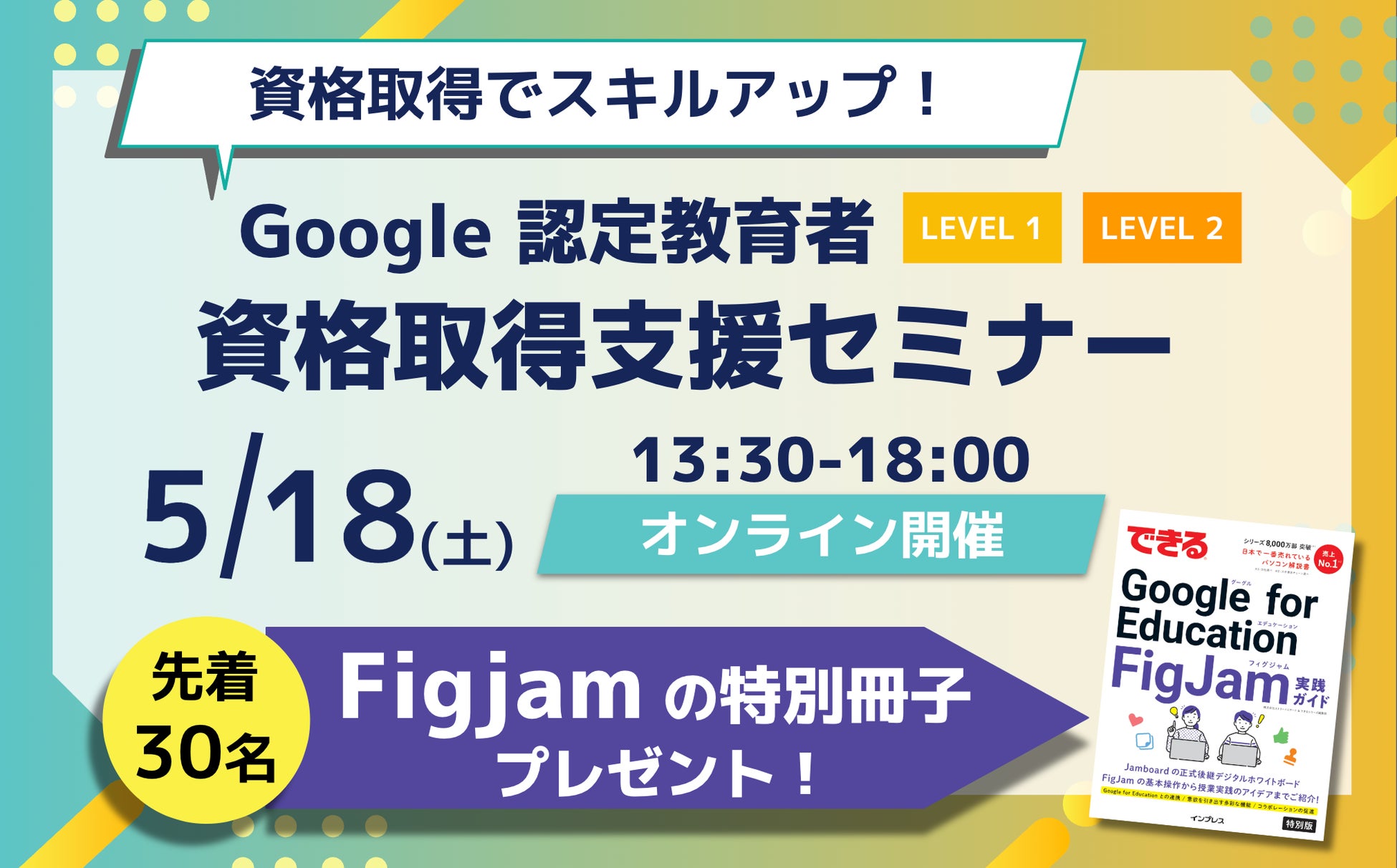 【先着30名様へ Figjam 解説冊子プレゼント!】5月の Google 認定教育者 資格取得支援セミナー開催のお知らせ