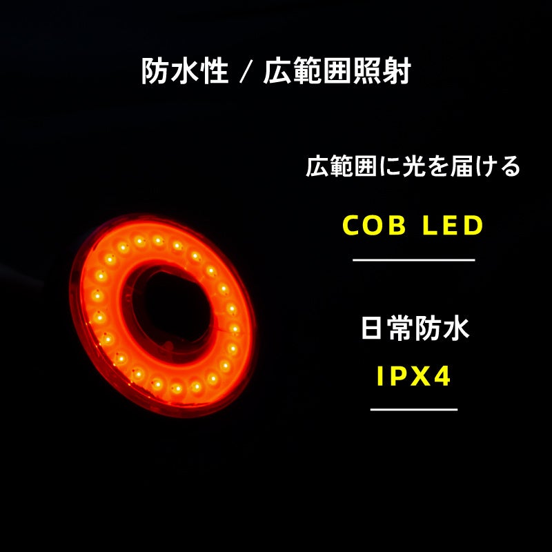 六段点灯モード 強、通常、弱、優しい点滅、スロー点滅、フラッシュ