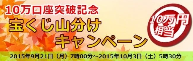 このたび10万口座突破を記念して、2015年9月21日(月)より「10万口座突破記念 宝くじ山分けプレゼントキャンペーン」を開催いたします。