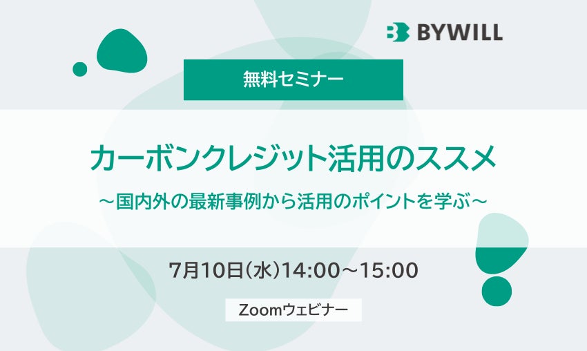 企業の脱炭素コンサルティングやカーボンクレジットの創出支援・売買を行う株式会社バイウィルは、2024年7月10日(水)、無料セミナー「カーボンクレジット活用のススメ」をオンラインにて開催いたします。