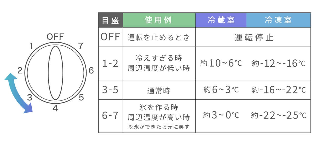 保存量に合わせて、冷蔵室と冷凍室の冷却温度を同時に段階調節できます。
