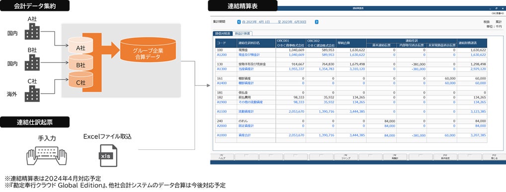 『勘定奉行V ERPクラウド』はもちろん、海外子会社向けの勘定奉行『勘定奉行クラウド Global Edition』や他社会計システムを含む、グループ全社の財務情報をリアルタイムに集約し、連結消去仕訳を反映した連結精算表まで作成できます。さらに、事業や地域などのセグメントを軸にグループ全社を横断的に比較・分析できるため、グループ全社の業績把握、経営戦略立案に活用できます。