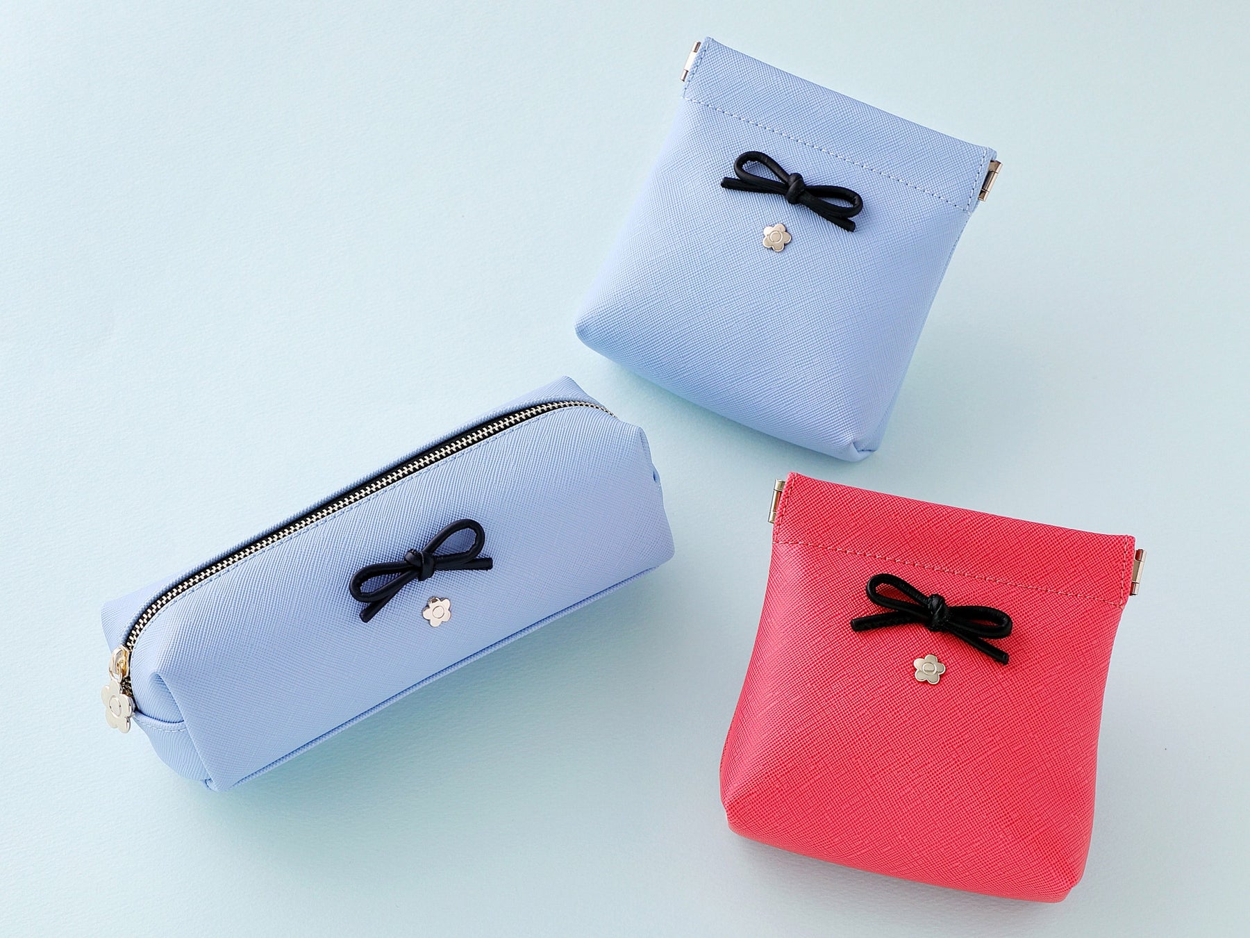 オーガンジーリボンを付けたシアーなショルダーバッグやポーチなど