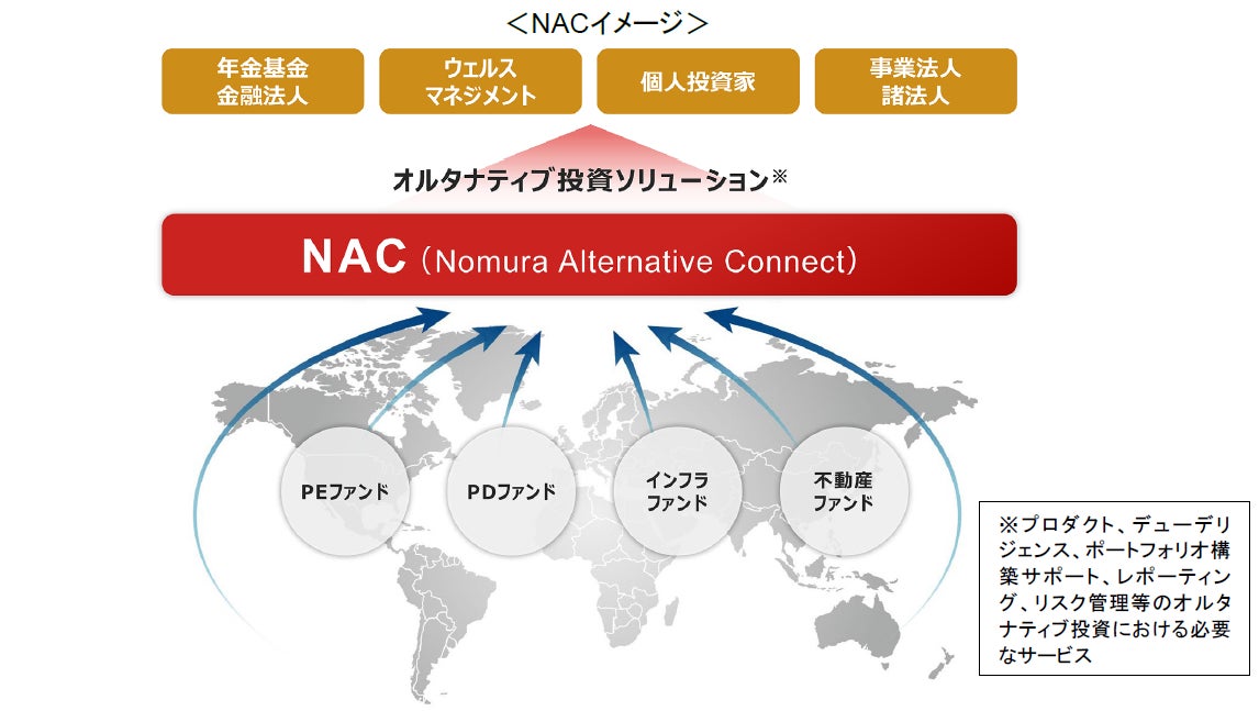 野村アセットマネジメント株式会社(CEO兼代表取締役社長: 小池広靖、以下「当社」)は、オルタナティブ投資ソリューション「野村オルタナティブコネクト」(以下「NAC」)」の提供を決定しました。サービスの開始時期は2025年3月期を予定しています。