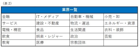 また、表1と合わせて、関係する19の業界ごとについても投稿を分類しました。(表2参照)なお、表2に記載のある19件に該当しない業界に関してはその他としてデータを処理しました。