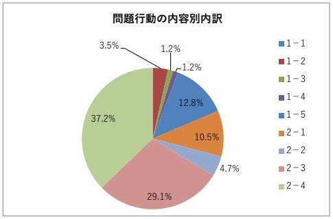 ・反社会的行為や規則・規範に反した行為(の告白・予告)、法律に抵触する可能性のある行為は16件(18.6%)でした。