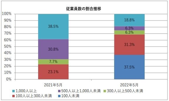これらの日系企業が上場企業か否か、また、それぞれの従業員数について分析しました。
