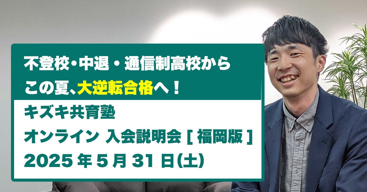 【この夏、人生を変える「大逆転」へ:5/31福岡版】キズキ共育塾が無料オンライン説明会開催!