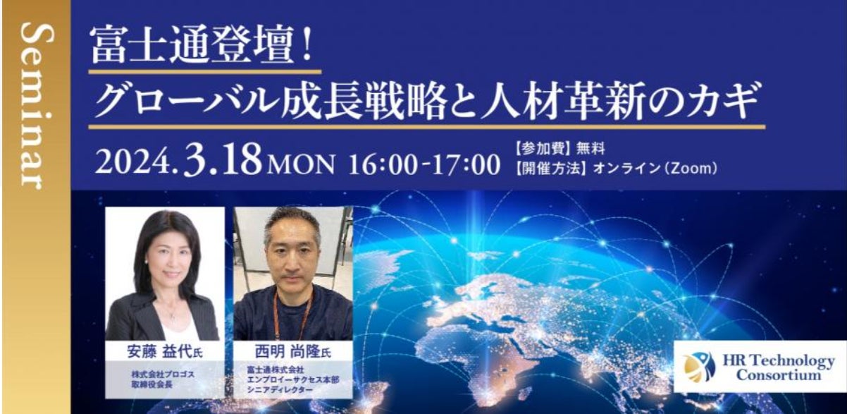 3月18日(月)開催 オンラインセミナー「富士通登壇!グローバル成長戦略と人材革新のカギ」にプロゴス社会長の安藤が登壇