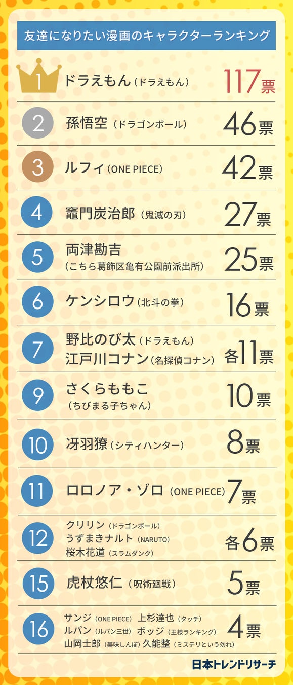 日本トレンドリサーチ・友達になりたい漫画のキャラクターに関する調査
