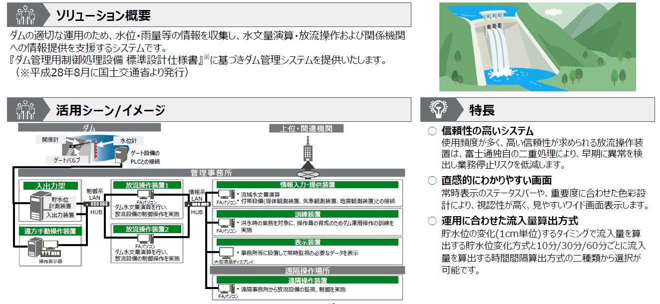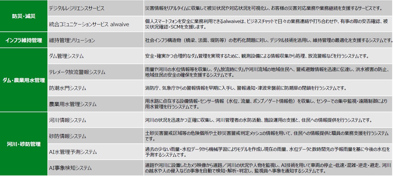 当社は、長年にわたり人々の生活を支えるダムや河川、道路など社会インフラを管理、運用するお客様に安心安全をご提供してまいりました。また、近年では、AIなどの最新技術を取り入れ、防災・減災対策ソリューションの高度化に取り組んでおります。昨今では自然災害の激甚化、頻発発生などから社会インフラ管理を行う国や自治体以外の民間企業にも防災・減災対策、事業継続に対するニーズが高まっております。