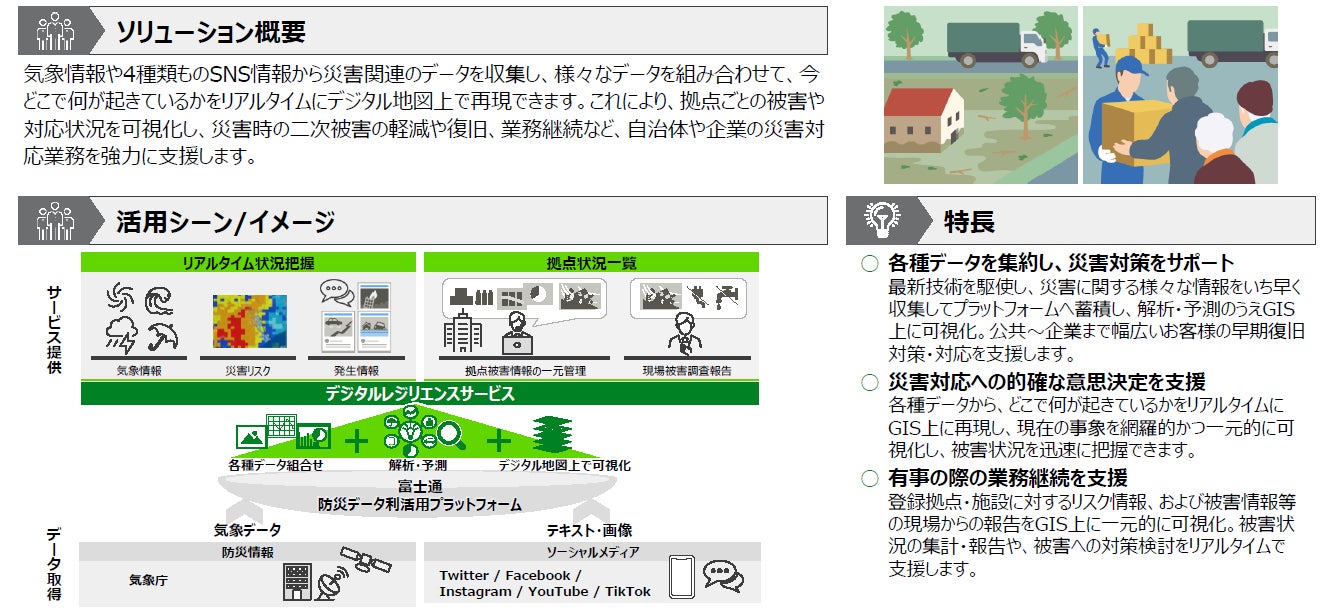 お客様の事業継続やサプライチェーンマネジメント(SCM)対策など様々なシーンでお客様を支援し、フェーズフリー社会の実現としなやかなレジリエンス社会づくりに貢献する当社が提供する防災ソリューションについて、是非ご取材ください。