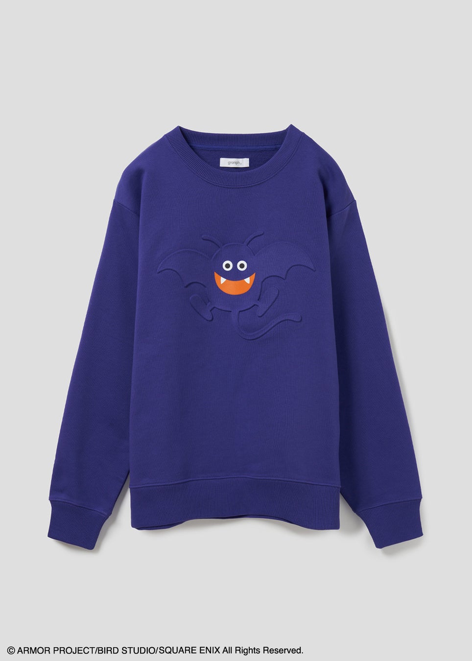 ドラキーになれちゃうスウェット。フロントには、立体的なエンボス加工でドラキーをおおきくデザイン。背面には次から次へと飛んでくるドラキーたちのシルエットがさりげなくデザイン。