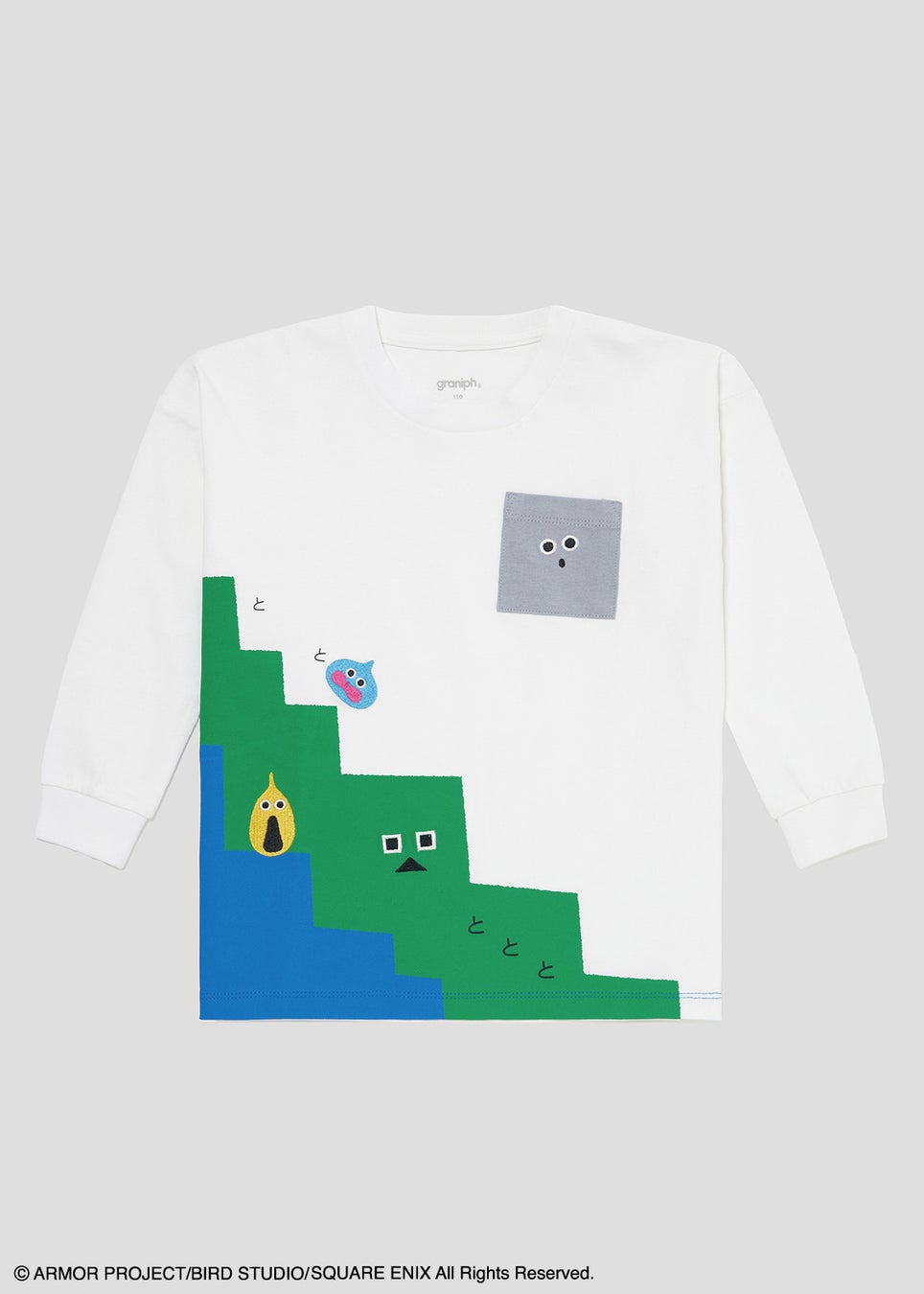 ▪️「ドラゴンクエスト DQ+g キッズロングスリーブTシャツ スライムぴぴぴ かいだん」3,500円(税込)(サイズ:100/110/120/130/ 140)