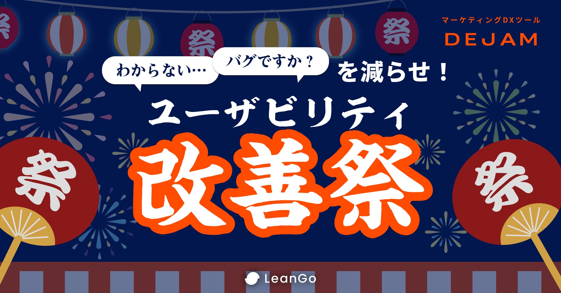 株式会社LeanGo (本社:東京都目黒区、代表取締役:平井 翔吏、以下 弊社) は、自社の運営するマーケティングDXツール「DEJAM( https://leango.co.jp/dejam/ )」をご利用中のユーザー様の不安を減らすために細やかなユーザビリティ改善を大量に実施したことをお知らせいたします。