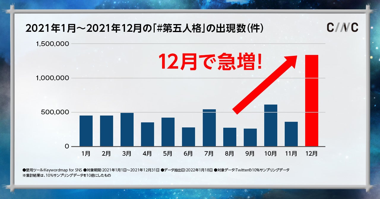 株式会社CINC(シンク、以下CINC)は、自社で開発・提供するソーシャルメディアの分析・運用ツール「Keywordmap for SNS」を用いて、アプリゲーム分野で、2021年12月にTwitterで反響の多かったハッシュタグ(#)の中から、「#第五人格」に関する調査を行いました。