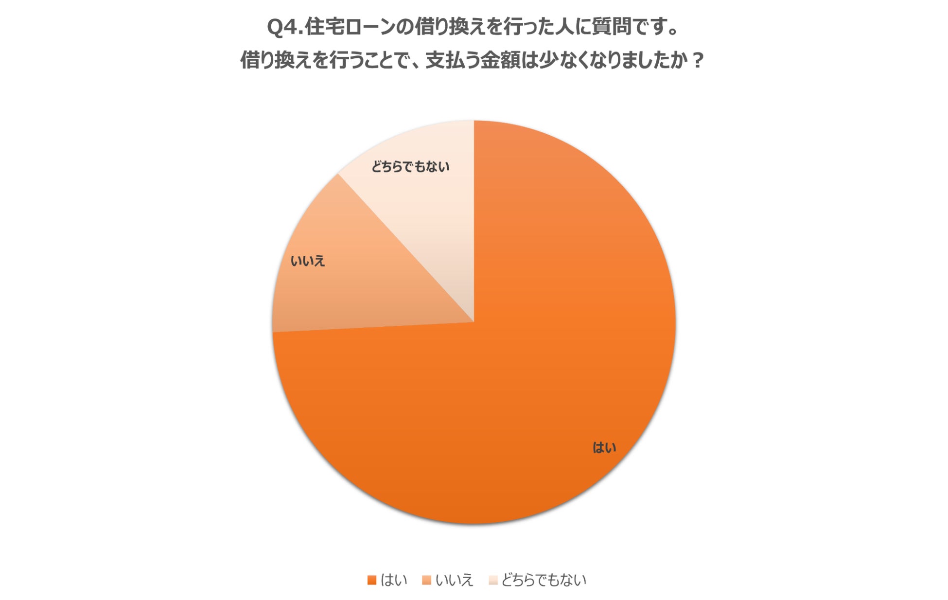 Q4.住宅ローンの借り換えを行った人に質問です。借り換えを行うことで、支払う金額は少なくなりましたか?
